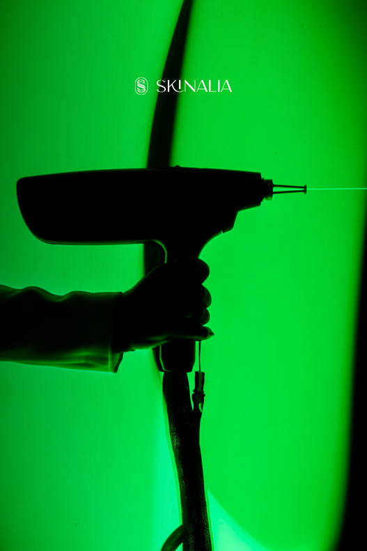 Protocolos personalizados para tratar: Manchas de acné, melasma, lentigos solares, pecas, ojeras pigmentadas y tatuajes.
